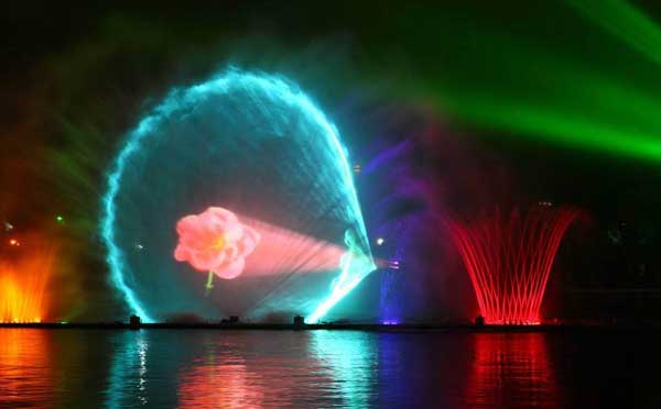 音樂噴泉對于大部分消費者而言并不陌生,激光水幕燈與音樂噴泉的奇妙搭配會給人帶來眼前一亮的感覺,伴隨著音樂頻率的時高時低和節(jié)奏的快慢切換,激光水幕燈會呈現(xiàn)出絢麗多姿的畫面感,五光十色的激光燈照射在噴泉上,能讓觀賞者迅速捕捉到激光水幕燈的存在和特別之處,加之噴泉水柱的形態(tài)變幻,僅僅利用三樣?xùn)|西就打造出舞臺的斑斕之感。